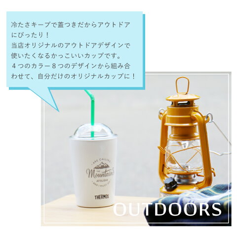 ● 商品情報 お洒落なカラーのタンブラーが登場 お洒落なドームがたの蓋つきで 中身がこぼれてしまう心配がありません ステンレス製魔法びん構造だから 保温保冷性能バツグン! 結露しにくいので、手を汚す心配もありません ストローで飲むから片手で簡単に持って使うことができます 室内だけでなく屋外でも大活躍してくれるでしょう 当店オリジナルのアウトドアデザイン 4つのカラーと8つデザインを組み合わせて 自分だけのオリジナルカップが作れちゃいます ● サイズ 300ml ● 素材 本体:ステンレス(アクリル樹脂塗装) フタ:飽和ポリエステル樹脂 パッキン:シリコン ● 名入れについて ■注文画面の備考欄へご記入ください。