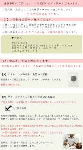 ※ご注文の際に必ずシミ抜き希望をご選択下さい。